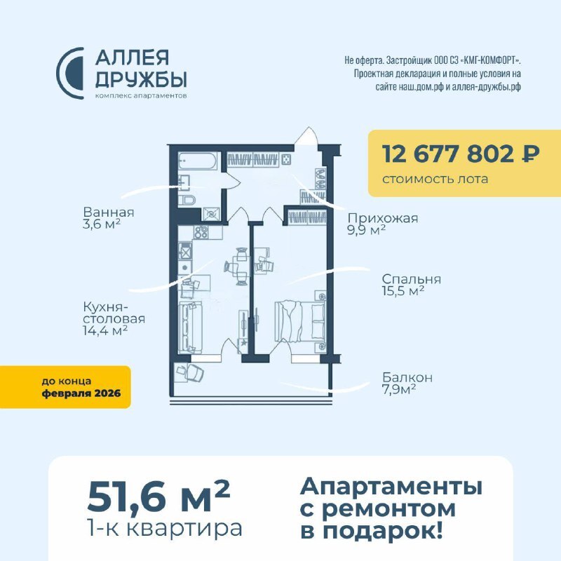В АК «Аллея Дружбы» доступны 3 лота, где ремонт уже входит в стоимость.